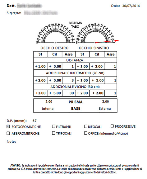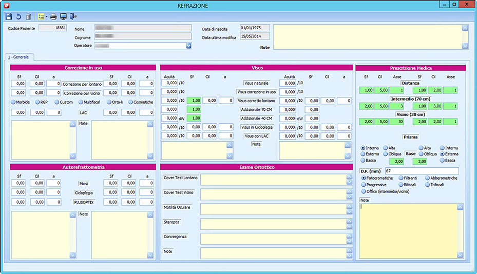La refrazione oculare è un esempio di esame con inserimento dati e stampa automatica della prescrizione medica.